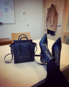 (As an aside, the color of the black for the Celine is actually a very cool black. The bottom picture, which I took in our Paris apartment, just had really warm lighting.)